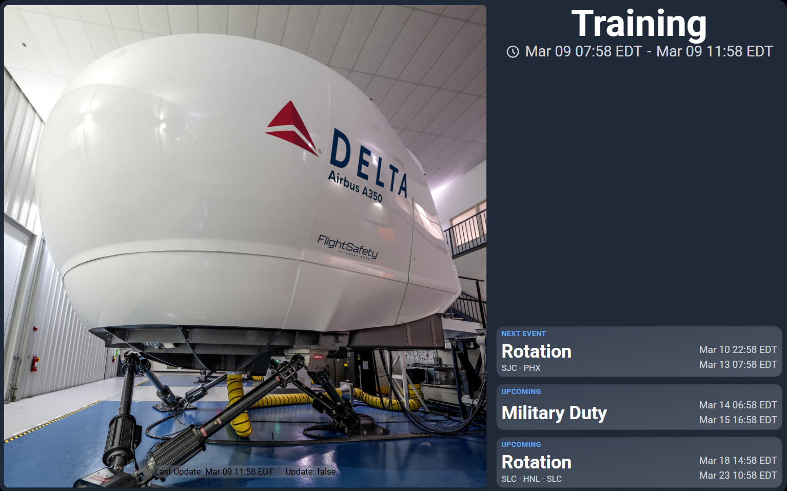 Delta Air Lines (DAL) JetBlue Airlines (JBU) via FLICA Frontier Airlines (FFT) via FLICA American Airlines All FLICA-based AirlinesTrackMyFA lets you follow the flight schedules of your favorite FAs. View real time flights and events on your own dedicated device!